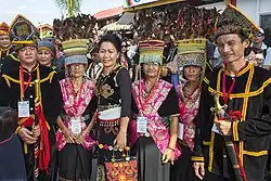 Kadazandusun (also written as Kadazan-Dusun) are native ethnic group in Sabah, Malaysia. They are formed as an amalgamation of the closely related indigenous Kadazan and Dusun peoples. [2] This ethnic group is the largest in the state, numbering almost a million individuals. Kadazandusun people concentrated in Kudat Division, West Coast Division, Lower and Upper Interior Division and Sandakan Division of Sabah, but also found Lahad Datu District in Tawau Division. "Kadazandusun" is an umbrella term that encompasses various sub-ethnic, tribes and sub-tribes under the Kadazan and Dusun labels. The language typically billed as Kadazandusun belongs to Dusunic languages family, an Austronesian language in the northern part of Borneo Island. Several Kadazandusun tribes speaks languages belong to other Sabahan languages family. Kadazandusun tradition hold that they are descended from Nunuk Ragang people but actually not all Kadazandusun sub-ethnic and tribes actually came from Nunuk Ragang. Traditionally farmers, Kadazandusun celebrates annual Kaamatan festival to honour the paddy's spirit. Their paramount leader known as Huguan Siou. Kadazandusun people had a traditional religion now known as Momolianism but recently most Kadazandusun are Christian (majority) and Muslim. In the past, Kadazandusun practiced headhunting. Kadazandusun are also known as Mamasok and Momogun, both meanings "indigenous people" and "people of the land" respectively. Sometimes the two words combined together as "Pasok Momogun" which carrying the meaning "indigenous people of the land". "The land" refers to either the Kadazandusun's land or the whole State of Sabah. Kadazandusun is recognised as an indigenous nation of Borneo with documented heritage by the United Nations Educational, Scientific and Cultural Organization (UNESCO) since 2004.[3] Kadazandusuns are part of the bumiputera in Malaysia having been endowed with rights concerning land, rivers, education and maintaining their own customary laws.