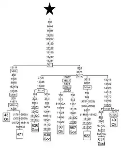 Maternal or Matrilineal Studies Using mitochondrial DNA (mtDNA), is a test used to explore genetic ancestry from the mother using mtDNA that is obtained from outside of a nucleus cell that isn't contaminated by the presence of Y-chromosome. According to a study published in 2014, by Kee Boon Pin on 150 volunteers from the Kadazandusun people all over the Sabah region, the Kadazandusun people belongs to 9 mtDNA Haplogroups (subjected to the numbers and types of samples involved in the study), with Haplogroup M being the highest frequency, where it represents (60/150 40%) of all maternal lineages. Followed by Haplogroup R (26/150 17.33%), Haplogroup E (22/150 14.67%), Haplogroup B (20/150 13.33%), Haplogroup D (9/150 6%), Haplogroup JT (6/150 4%), Haplogroup N (4/150 2.67%), Haplogroup F (2/150 1.33) and Haplogroup HV (1/150 0.67%). These mtDNA Haplogroups have multiple subgroup distribution into several subclades due to genome mutations for thousands of years. The Haplogroup M subclades founded were: M7b1'2'4'5'6'7'8 (22%), M7c3c (12.67%), M31a2 (0.67%), and M80 (3.33%). The Haplogroup E subclades founded were: E1a1a (8%), E1b+16261 (4.67%), and E2 (2%). The Haplogroup B subclades founded were: B4a1a (3.33%), B4b1 (1.33%), B4b1a+207 (3.33%), B4c2 (0.67%), B4j (0.67%), B5a (2%), and B5a1d (1.33%). The Haplogroup D subclades founded were: D4s (1.33%), and D5b1c1 (4.67%). For Haplogroup F, H, JT, R and N, there were only 1 subclade founded for each haplogroup: F1a4a1 (1.33%), HV2 (0.67%), JT (4%), R9c1a (17.33%), N5 (2.67%).[9] Kee Boon Pin studies confirmed the mtDNA studies conducted by S. G. Tan, on his claim of genetic relation between Kadazandusun to another Taiwan aboriginal, the Paiwan people through the sharing of Haplogroup N as the fundamental DNA.[10] However, in his studies published in 1979, S.G. Tan did not emphasise the significant of this finding to the Out Of Taiwan theory due to the very small percentage of Haplogroup N found in the Kadazandusun test subjects that is insufficient to represent the whole Kadazandusun ethnicity. S.G. Tan did state that the Kadazandusun ethnic have close genome relation to the other ethnics currently present in Borneo, Peninsular Malaysia and the Philippines, including the Ibans, Visayan, Ifugao, Jakun Aboriginal Malays, Dayak Kalimantan, and Tagalog.[10][9]