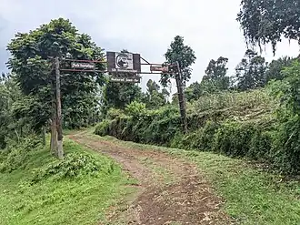 With an area of 6,000 km2 (2,300 sq mi), Kahuzi-Biega is one of the biggest national parks in the country. Set in both mountainous and lowland terrain, the park lies west of the town of Bukavu in South Kivu Province.[5] The smaller, 600 km2 (230 sq mi) eastern part of the park lies in the Mitumba Mountains of the Albertine Rift in the Great Rift Valley. The larger, 5,400 km2 (2,100 sq mi) western part is mainly lowland terrain stretching from Bukavu to Kisangani. It is drained by the Luka and Lugulu rivers which flow into the Lualaba River.[3] A 7.4 km (4.6 mi) wide corridor connects the two parts.[5] Two dormant volcanoes are set within the park's limits and lend their names to it: Kahuzi (3,308 m (10,853 ft)) and Biéga (2,790 m (9,150 ft)).[5]