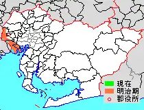 * yellow - areas formerly within the district borders during the early Meiji period