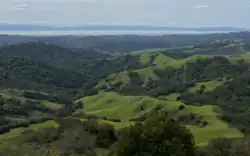 Kaiser Creek has its source on Rocky Ridge in the Inner Coast Ranges, one of the highest and most prominent points in Contra Costa County, California. It soon crosses into Alameda County towards the rest of the San Leandro Creek watershed.[3] Its catchment exhibits a character typical of many other headwater streams in the Inner Coast Ranges, with steep ridge topography intersected by numerous small valleys. Vegetation in the watershed is characteristic of much of the East Bay region, dominated by oak-laurel forests and grassland.[5] The area has a Cool-summer mediterranean climate, modulated by frequent fogs from the Pacific Ocean.[5][2]