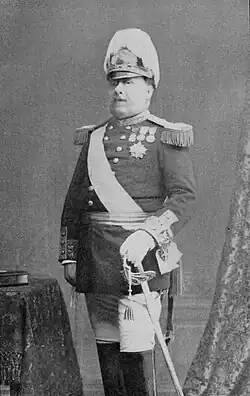 Armstrong's instructions for Portugal were to negotiate an expanded treaty with the government.[91] They arrived at Santa Apolónia railway station in Lisbon on August 19. Kalākaua was presented with the Grand Cross Order of the Immaculate Conception of Vila Viçosa during an audience with King Luís I at the Palace of Ajuda, and also attended a bullfight with Luis's father King Ferdinand II at the Pena Palace. When they left Portugal on August 24, Armstrong remained behind to initiate a treaty.[91][92]