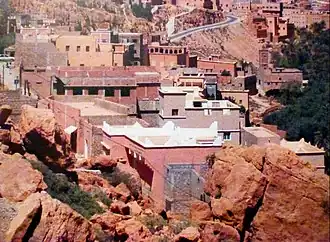 Kelâat M'Gouna (Moroccan Arabic: قلعة مݣونة, romanized: qəlʿət mguna) or Tighremt NImgunen (Berber languages: ⵜⵉⵖⵔⵎⵜ ⵏ ⵉⵎⴳⵓⵏⵏ) is a city in Tinghir Province, Drâa-Tafilalet, Morocco. According to the 2019 census it has a population of 38,140.[1] This town constitutes an economic and social center for the region, for its very animated nature. Kelâat M'Gouna is most known for the "Roses Festival" which takes place in the city every year in May.
