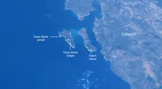 ![]() NASA image showing Kalem Island and nearby Garip Islands | |