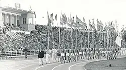 The stadium was built during the Soviet occupation of Estonia and was opened on 12 July 1955. It was the first new large-scale sports complex built in Tallinn after World War II. The initial plans were grandiose: the first blueprints saw the stadium have a 30,000 capacity seating area and a 16,000 capacity standing area, as well as a 6 meter tall statue depicting Estonian folklore hero Kalevipoeg.[3] However, the project was later scaled-down and saw the stadium have a capacity of 12,000.
