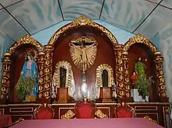 Altar showing the Twin Crosses on either side of the crucifix
