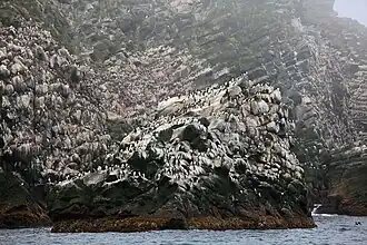 Kamen Ariy (Russian: Камень Арий), or Ary Rock, is an uninhabited islet of the Commander Islands in the North Pacific Ocean, east of the Kamchatka Peninsula in Eastern Russia. These islands belong to the Kamchatka Krai of the Russian Federation. Described as "craggy" by Encyclopædia Britannica,[1] Kamen Ariy is about 8 kilometres (5 miles) west of Tufted Puffin Rock and consists of two rocks. The northern rock is pointed and reaches a height of 45 m (150 ft). The southern rock is much flatter and only reaches a height of 2.1 metres (6 feet 11 inches).[2]