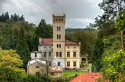The Kamenice Castle was rebuilt in the English neo-Gothic style in 1875–1880 by the architect Jiří Stibral.[7] Today it is privately owned and inaccessible. Next to the castle is located the Church of Saint Francis of Assisi. The originally early Gothic church was rebuilt in 1797 and modified into its current form in 1898.[8]