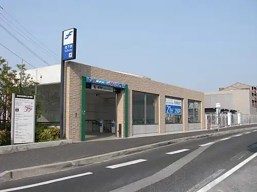 Kamo Station (賀茂駅) is a subway station on the Fukuoka City Subway Nanakuma Line in Sawara-ku, Fukuoka in Japan. Its station symbol is a catfish in violet, the sign of the Kamo Shrine.