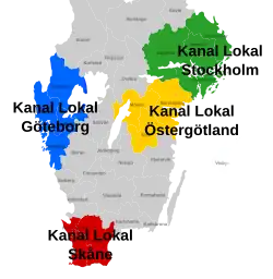 - Kanal Lokal Göteborg, broadcasting to the area surrounding Gothenburg via the Gothenburg, Uddevalla, Trollhättan and Bäckefors transmitters.