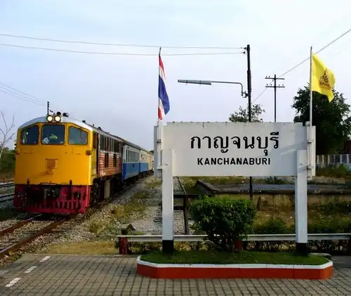 Kanchanaburi railway station is a main railway station of province of Kanchanaburi located in Ban Tai Subdistrict, Kanchanaburi City, Thailand. It is a class 1 railway station located 117.046 km (72.7 mi) from Thon Buri railway station, and 77 km (47.8 mi) away from the Nam Tok railway station, the terminal station.[1] The line opened in 1942 by the Imperial Japanese Army, during the Second World War. After the war, the State Railway of Thailand bought the line from the Allied powers, and the station reopened in June 24, 1949, from Nong Pladuk Junction.