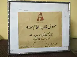 - Honored by Ghalib Award in the year 1974 (Refer Certificate below).