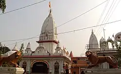 • Daksheswara Mahadev Temple - Kankhal is most known for the ancient temple of Daksheswara Mahadev temple,[13] situated in the south Kankhal town. The present temple was built by Queen Dhankaur in 1810 AD [14] and rebuilt in 1962.[2][15][16] Next to the temple is the 'Daksha Ghat' on the Ganges, and close by is the Nileshwar Mahadev Temple. Much of the details of the famous Ashvamedha Yagna (Horse Sacrifice) of Daksha are available in the Vayu Purana[2]