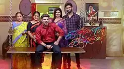 Kannana Kanne was a 2020-2023 popular Indian Tamil-language family drama soap opera that aired on Sun TV from 2 November 2020 to 4 March 2023.[1][2] The show starred Nimeshika Radhakrishnan with, Babloo Prithiveeraj, Rahul Ravi, Akshitha Boopiah and Nithya Das. The serial is a remake of Telugu television series Pournami that aired on Gemini TV.[3] The show started to re-telecast on Sun TV from 27 March 2023. This show got replaced by Mr. Manaivi