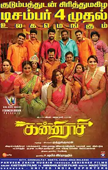 Kanni Raasi (transl. Virgo) is a 2020 Indian Tamil-language romantic comedy film directed by Muthukumaran and produced by Shameem Ibraham. The film stars Vimal and Varalaxmi Sarathkumar, with Pandiarajan, Yogi Babu, Kaali Venkat and Robo Shankar amongst others in supporting roles.