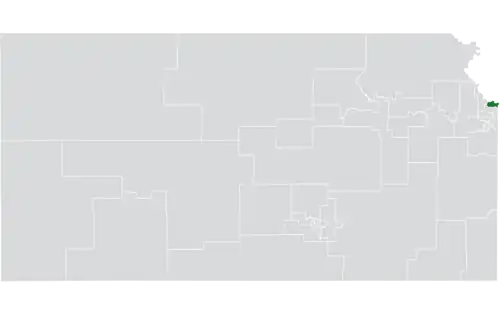 The district is located entirely within Kansas's 3rd congressional district, and overlaps with the 32nd, 33rd, 34th, 35th, 36th, and 37th districts of the Kansas House of Representatives.[4] It borders the state of Missouri, located across the Missouri River from part of that state's Kansas City.[1]