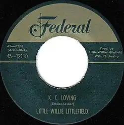 Through a connection to producer Ralph Bass, they wrote "Kansas City" specifically for West Coast blues/R&B artist Little Willie Littlefield.[2] There was an initial disagreement between the two writers over the song's melody: Leiber (who wrote the lyrics) preferred a traditional blues song, while Stoller wanted a more distinctive vocal line; Stoller ultimately prevailed. They taught the song to Littlefield at Maxwell Davis' house, who arranged and provided the tenor sax for the song.[2] Littlefield recorded the song in Los Angeles in 1952, during his first recording session for Federal Records, a King Records subsidiary. Federal's Ralph Bass changed the title to "K. C. Loving",[4] which he reportedly considered to sound "hipper" than "Kansas City". Littlefield's record had some success in parts of the U.S., but it did not reach the national chart.