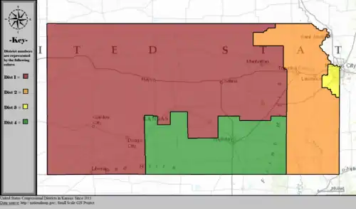 Members of the United States House delegation from Kansas, their terms, their district boundaries, and the district political ratings according to the CPVI. For the 118th Congress, the state's congressional delegation consists of 3 Republicans and 1 Democrat.