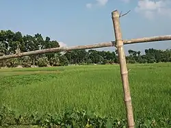 Historically home to Shishupala,[16] the ruins of the ancient capital and reservoir can still be found today. Kapasia is filled with numerous medieval forts such as the Ekdala Fort, Dardaria Fort, Tok Fort and the Karnapur Fort. Out of the upazila's 594 mosques, some notable one include the Sultanpur-Dargapara Shahi Jame Masjid in Tok.[17] The Raniganj Neelkuthi (indigo-house), dating back to the 1800s, and the Dak Bungalow of Lakhpur are both examples of colonial-era architecture. The Joradighi (a joint pair of reservoirs), the Dhadarchar (Shitalakshya-Brahmaputra confluence), Baniar Beel, Nail Beel, Machha Beel, Buri Beel, Suti canal and the Kamra EcoPark are popular natural tourist sites. Other tourist sites include the Faqir Majnu Shah Bridge, Angona Amusement Centre and the home of Tajuddin Ahmad, first Prime Minister of Bangladesh, in Durdaria.[4]