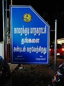Karaikudi City Municipal Corporation[1] is the civic body governing city of Karaikudi in Tamil Nadu state of India. It was the 22nd Municipal corporation in Tamil Nadu, and was established on 15 March 2024. It is headed by the mayor, who presides over a deputy mayor, and is administrated by the City Commissioner. Karaikudi Urban Agglomeration area has adjoined with the surrounding areas of Sankarapuram, Kottaiyur, Kandanur, and Puduvayal town panchayats; and village panchayats that includes Koviloor, Ariyakudi, Amaravathiputhur, Iluppaikkudi and Managiri. The annual tax revenue of the corporation is expected to be about 57.25 crore rupees. Karaikudi is one of the major educational cities and tourist attractions in Tamil Nadu and had a population of 106,784 [2] and area of 94.31 km² as in 2023.[3]