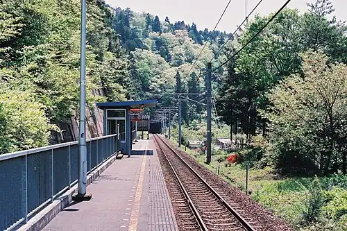 The station consists of one side platform serving a single bi-directional track. The station is unattended.