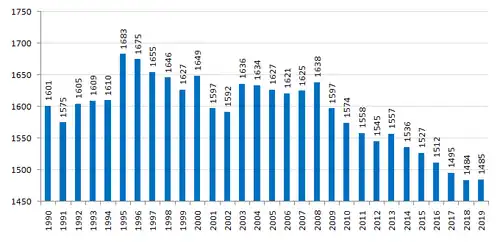 Resident population of Karancsalja (1990–2019)[3]