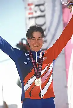 Karen Dunne (born December 30, 1967) is a retired female professional cyclist from the United States.[1] She is best known for winning the gold medal at the women's individual road race at the 1999 Pan American Games in Winnipeg, Manitoba, Canada. She also won 11 U.S. National Championships: 3 Elite (Points race, Criterium, Kilometer Time Trial), 3 Collegiate (Criterium, 500 Meter Time Trial, Track Omnium), and 5 Mixed Tandem (Pursuit, 2 x Kilometer Time Trial, 2 x Match Sprints). Her cycling career began while attending Indiana University in Bloomington where she won the 1991 Women's Little 500.