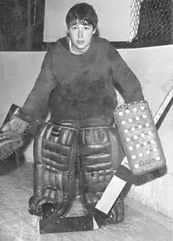 The USHL welcomed her as the first female professional hockey player when she was only 18. At the time, the Iron Rangers were the defending champs. Leonard "Oakie" Brumm, then coach for the past eighteen seasons, has said her only drawback was her size and that since they were larger, the team's other goalies "stopped more pucks by accident than she did on purpose."[2][3]