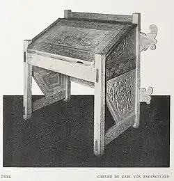 Throughout his life, Rydingsvärd made and sold furniture and architectural features. He often took large commissions to carve sets of furnishings for entire homes, and for friends and artistic collaborators such as Douglas Volk.