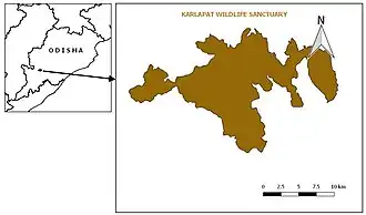![]() Location of Karlapat Wildlife Sanctuary in Odisha | |