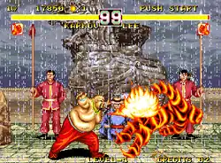 A new gameplay feature is introduced in the form of "one-two attacks". When the player presses a heavy attack button while performing a light attack or blocking, the interval between light attacks is reduced, making combos easier to perform. While this feature is not mentioned on the instruction card, the final page of the home Neo Geo version's manual mentions it, describing as the "one-two attack" system.