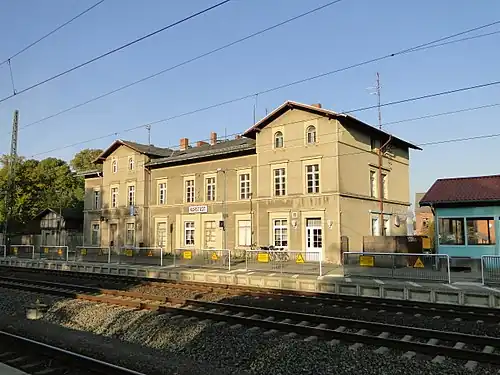 In the early 2000s, the building was one of the few station buildings that had survived from the early years of the Berlin–Hamburg Railway that was not yet a heritage-listed building.[4] Since then, the ensemble of the station, "consisting of the main station buildings, the outbuilding, the goods shed and the paving", have been given heritage protection.[9] After the building had long stood empty for the most part, the last remaining tenant, a restaurant, left the station in early 2013.[10]