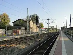 In the 1990s, the station was rebuilt and provided with platforms on the outsides of the tracks. In a second stage, the line was upgraded to a maximum speed of 230 km/h and all level crossings were removed and replaced by overpasses or underpasses. The crossing of the former federal highway in the station area was completely closed, but cyclists and pedestrians can use the platform tunnel.