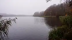 After the invasion of Poland, which started World War II, Kartuzy was occupied by Germany, where it was administered as part of the newly formed province of Reichsgau Danzig-West Prussia, Regierungsbezirk Danzig. In mid-September 1939 the SS Wachsturmbann "Eimann" and Einsatzkommando 16 entered the town to carry out mass arrests and massacres of local Poles as part of the Intelligenzaktion Pommern.[5] Around 4,000 Poles from Kartuzy and the county were arrested in September 1939.[6] That same month, many local pre-war Polish activists, as well as railway, post and court employees, were murdered in massacres in the forests in Gmina Somonino and at the Wzgórze Wolności, while 10 Polish priests were murdered in the forest near Kartuzy (see: Nazi persecution of the Catholic Church in Poland).[6] Dozens of Poles from Kartuzy, including local officials, teachers, merchants, postmen, restaurateurs, policemen were murdered in October and November 1939 in the nearby forest and in Piaśnica.[7] Poles from the village of Egiertowo were also murdered in the Kartuzy forest.[8] At the end of World War II Kartuzy was captured by the Red Army and afterwards it was restored to Poland.