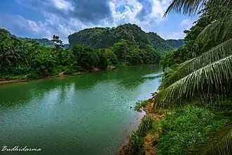 The river flows in the southwest area of Java with predominantly tropical monsoon climate (designated as Am in the Köppen-Geiger climate classification).[6] The annual average temperature in the area is 23 °C. The warmest month is August, when the average temperature is around 26 °C, and the coldest is January, at 20 °C.[7] The average annual rainfall is 3834 mm. The wettest month is December, with an average of 578 mm rainfall, and the driest is September, with 35 mm rainfall.[8]