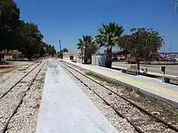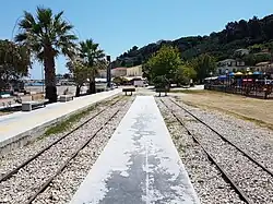 Katakolo railway station (Greek: Σιδηροδρομικός Σταθμός Κατακόλου, romanized: Sidirodromikós stathmós Katakolo) is a railway station that serves the town of Katakolo, Elis in Western Greece, Greece. Located in the centre of Katakolo, close to the harbour and ferry port, the station was opened in 1882 by the Pyrgos-Katakolo Railway Company (SPK), (now part of OSE). Today TrainOSE operates 3 scheduled daily Regional trains[3] to Olympia, via Pyrgos.[4][5] The station is unstaffed[6] however there are waiting rooms available. It was the most western active station on the OSE network.