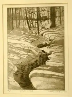 Kathrin Cawein (1895–1996) was an American printmaker known for her etchings. Her style was realist and her subjects were mainly landscapes and interiors.[1] Early in her career, her work received praise from one critic for its "adroit handling of color and good drawing — a technique that seems to express personal engaging conceptions."[2] Critics also considered her prints to be "striking"[3] and having a "high level of workmanship."[4]