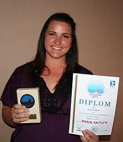 Steele's international career began in 2010. During the summer 2009, fly-offs were held for members of the NAR who want to be part of the International Team at the 18th World Space Modeling Championships. Steele was invited to become a member of the United States World Space Modeling Team, and compete in Vldnik, Serbia in early September 2010, despite not having formally competed for the team.[22] Steele placed 11th in S5 Scale Altitude, though she had the highest recorded altitude in the event.[23][24] In 2011, Steele was invited to return to the International Team as an assistant team manager,[25][26] alongside Quest Aerospace's Bill Stine for the junior World Space Modeling Championships team in the 2012 competition in Liptovsky-Mikulas, Slovakia.[8][27] Steele reprised her position as team manager at the FAI European Championships in Varna, Bulgaria in 2013,[28] as well as in the FAI European Championships in Lviv, Ukraine in 2015, but was unable to return to the FAI World Space Modeling Championships in Lviv, Ukraine in 2016 due to scheduling conflicts.