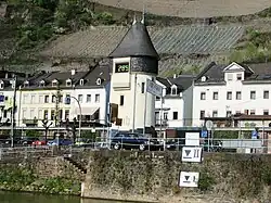 Kaub (German pronunciation: [ˈkaʊp] ⓘ; old spelling: Caub) is a town in Germany, state Rhineland-Palatinate, district Rhein-Lahn-Kreis. It is part of the municipality (Verbandsgemeinde) Loreley. It is located on the right bank of the Rhine, approx. 50 km west from Wiesbaden. It is connected to Wiesbaden and Koblenz by railway. It has a Roman Catholic and an Evangelical church, and a statue of General Blücher. Historically, trade mainly consisted of the wines of the district.[3]