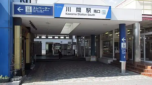 ![]() The south entrance to Kawama Station in May 2013 | ||||||||||||||||||||||||||||