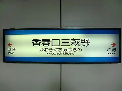 Kawaraguchi Mihagino Station (香春口三萩野駅, Kawaraguchi Mihagino-eki) is a Kitakyushu monorail station in Kokura Kita ward, Kitakyushu, Japan.[1]