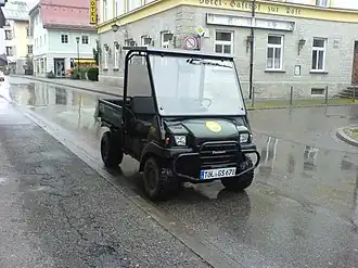 The MULE 2010 was introduced in 1989, and featured a larger 535 cc (32.65 cu in) engine, a high/low CVT transmission, selectable four-wheel-drive and a De Dion rear suspension.[1] 1990 saw the introduction of three new MULEs; the 2020, which was designed for golf courses and used a fan-cooled single-cylinder engine, the 2030, which was designed for industrial work, and the compact 500 model with a single seat.[1]