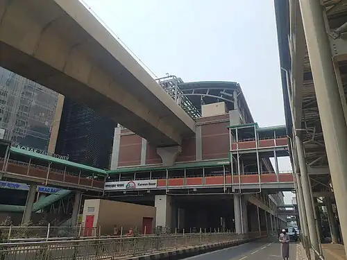 Karwan Bazar (Bengali: কারওয়ান বাজার, romanised: Karoan Bajar) is an elevated metro station of the Dhaka Metro's MRT Line 6. This station is located in the area of Kawran Bazar, and was opened from the 31 December 2023.[2]