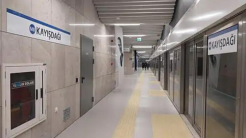 Kayışdağı is an underground station on the M8 line of the Istanbul Metro.[1][2] It is located on Dudullu Street in the Kayışdağı neighbourhood of Ataşehir. It was opened on 6 January 2023.[3]