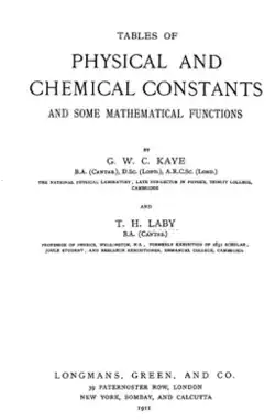 ![]() Title page for Tables of Physical and Chemical Constants and Some Mathematical Functions (1911), more commonly known as "Kaye and Laby" | |