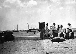 ![]() Kayeli men at the Lumaiti riverbank in Buru, 1892. | |