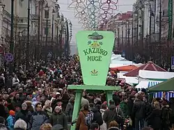 Kaziuko mugė or Saint Casimir's Fair[1] is a large annual folk arts and crafts fair in Lithuania, dating to the beginning of the 17th century. The fair is traditionally held in city's markets and streets on the Sunday nearest to 4 March (Feast of St. Casimir), the anniversary of Saint Casimir's death. In Lithuanian, Kaziukas is a diminutive of Casimir. Today, Saint Casimir's fair also features music, dance, theater performances; it attracts tens of thousands of visitors and many craftsmen from across Lithuania as well as from neighbouring countries such as Latvia, Estonia, and Poland.[2] In recent years, the fair has expanded into other cities in Lithuania, Belarus, Poland.