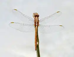 This species resembles the black-tailed skimmer[4] but is smaller and slimmer and the male has no black tip. Females and immature males lack the black abdominal pattern.