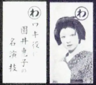 - ^ Ashihara, Kuniko [in Japanese] (September 1982), "Shūsen, soshite Sonoi Keiko-san no koto" 終戦、そして園井恵子さんのこと /, Higeki Kigeki, vol. 35, no. 9, pp. 54–55