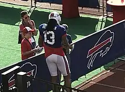 Benjamin signing an autograph at Bills training camp in August 2018